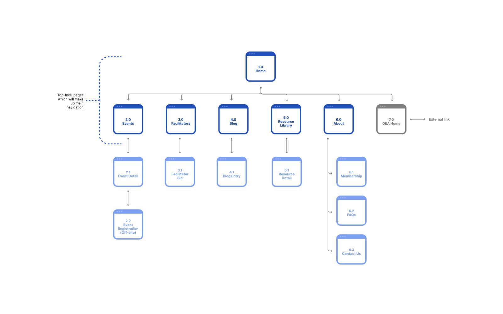 The above is a relatively typical site map that demonstrates the overall site structure and organization.