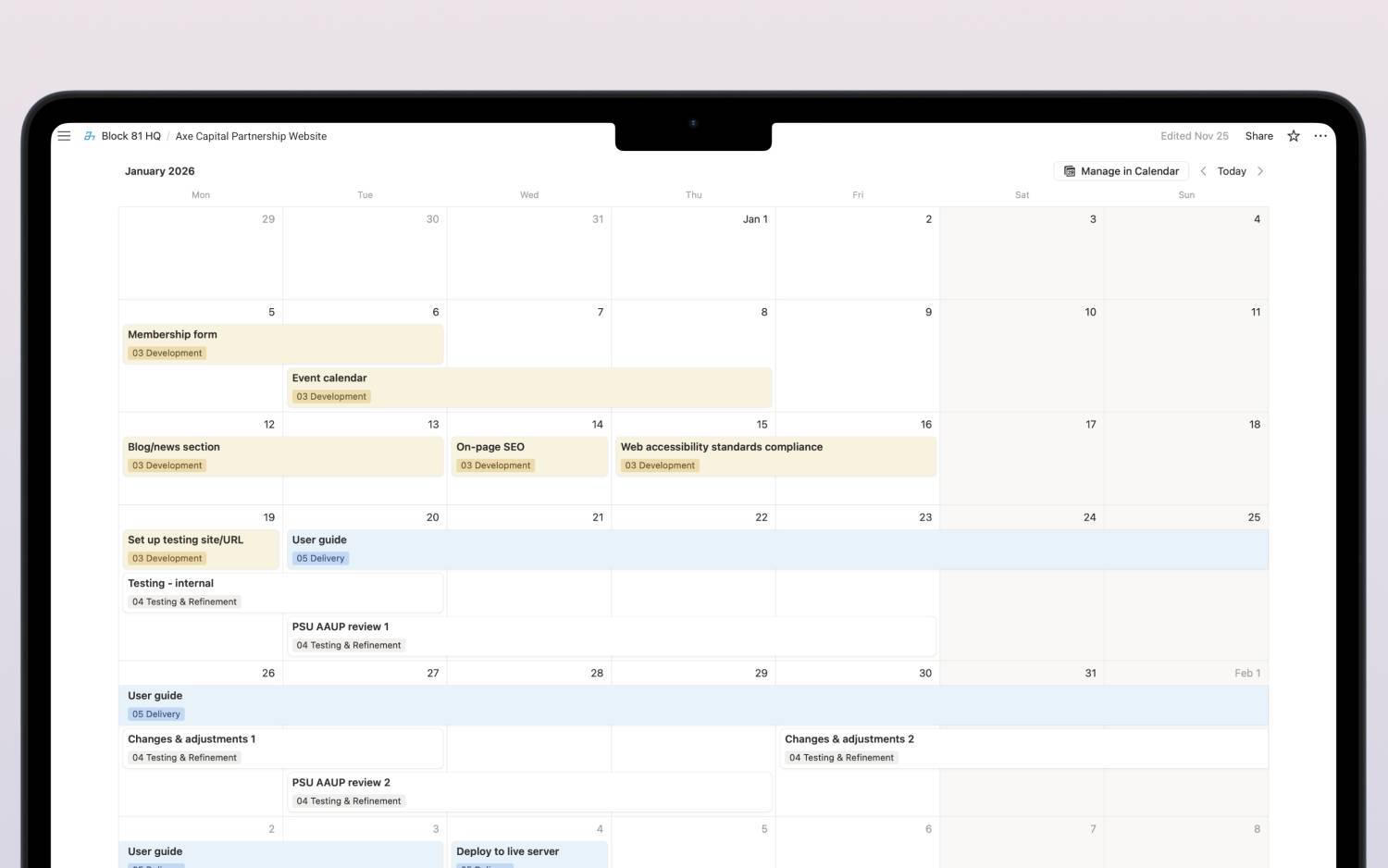 Timelines vary based on project complexity, your responsiveness to feedback requests, and any scope adjustments during the process. We'll provide a detailed timeline in your project Scope of Work.