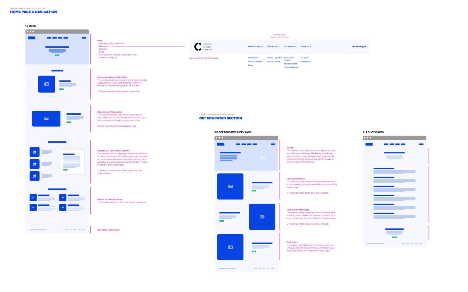 Our site flow decks gave CDC a really good view of the overall site as well as the content needs for the site, which we developed based on the goals and audience information in their creative brief. This resulted in critical questions being asked for not just clarification, but to ensure all bases were covered.