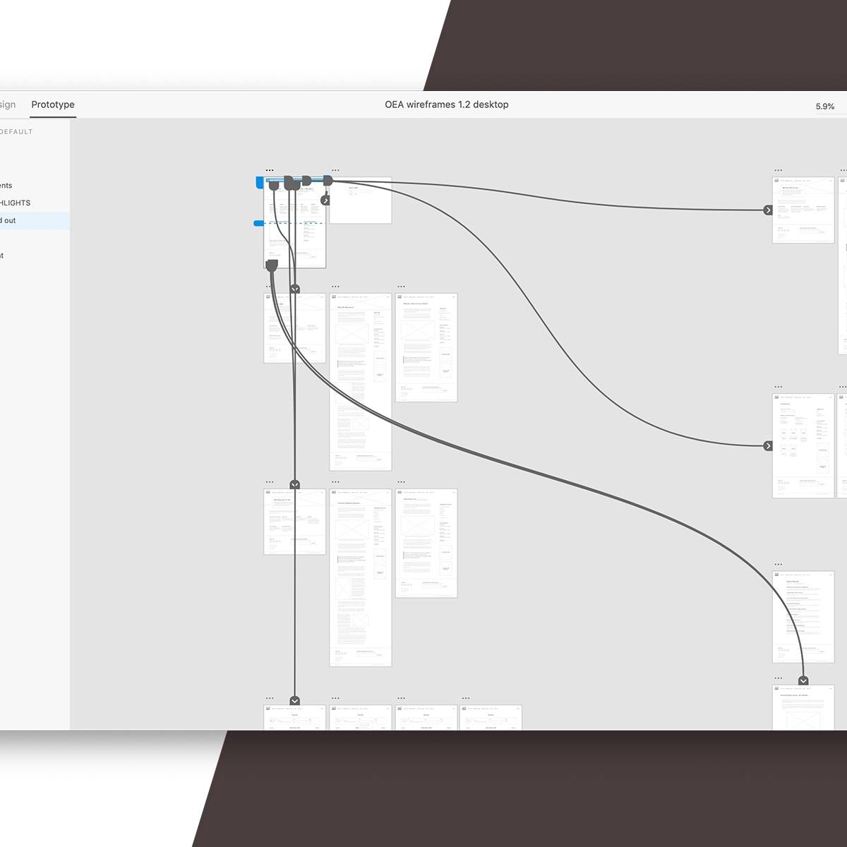With the content audit and structure set, wireframing was the next phase. It was important to keep a good flow to the structure of the various sections. Wireframing was a great way to explore options for this. It also allowed the OEA team to get a good feel for the hierarchy of content.